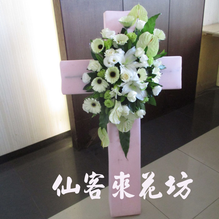 【喪禮十字架】十字架、喪事十字架、弔唁十字架、致喪十字架、弔唁花禮十字架一個,素雅莊重,喪禮十字架適合送到追思禮拜的靈堂表達永遠的哀思,花材配色依往生者的年齡而定。